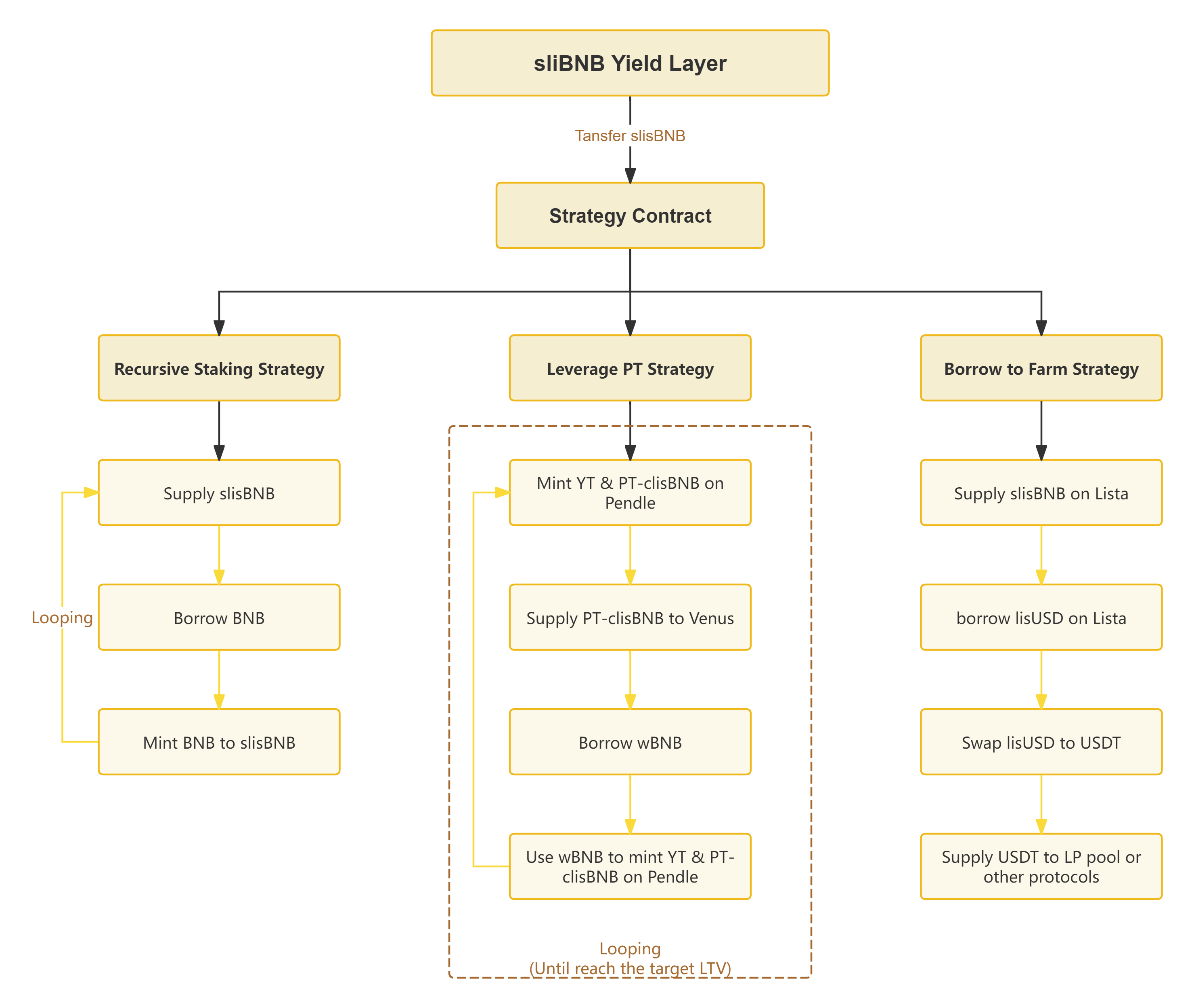 The slisBNB yield layer will incorporate three main types of strategies to maximize benefits: